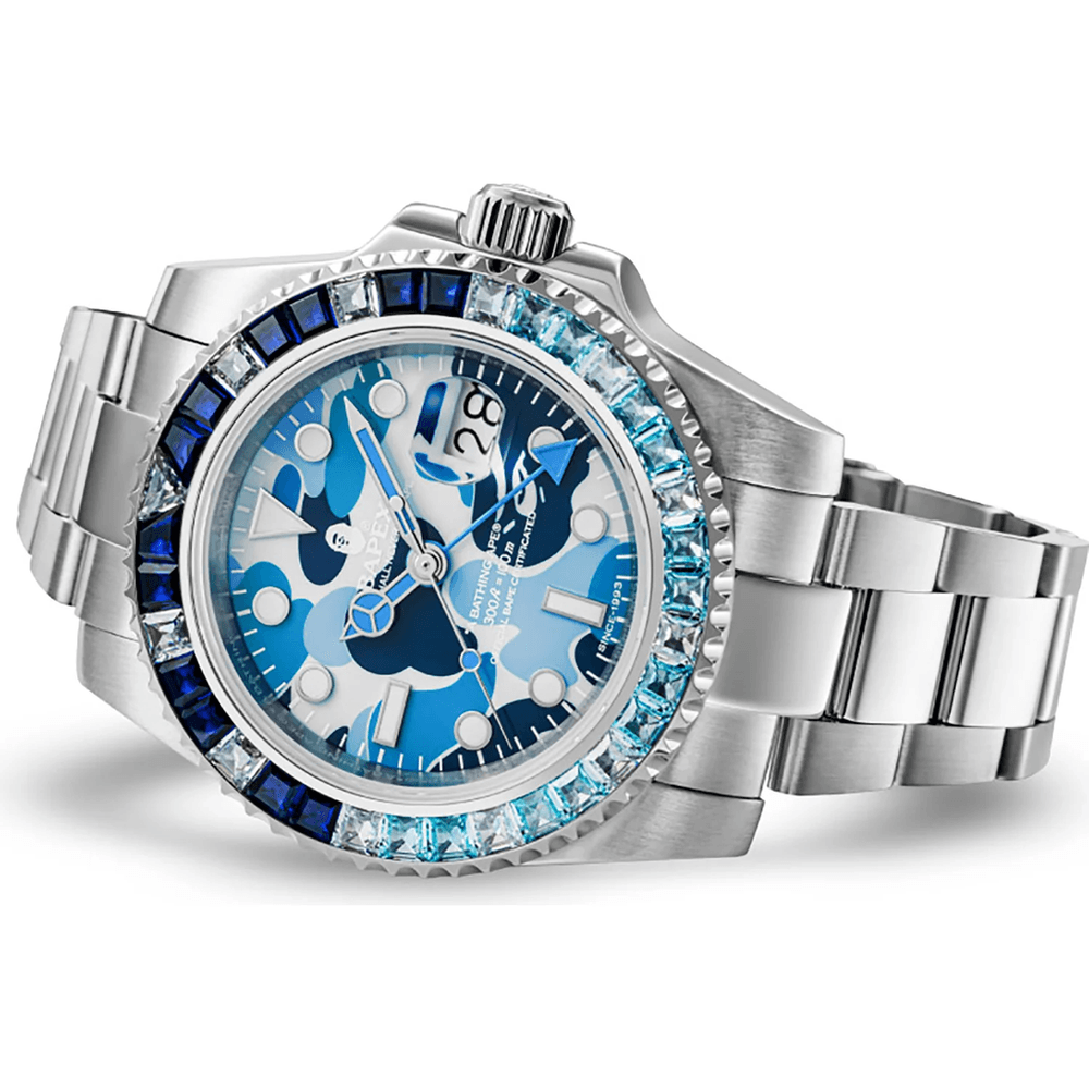 Discover the TYPE 2 BAPEX ABC CAMO CRYSTAL STONE MENS Blue Watch