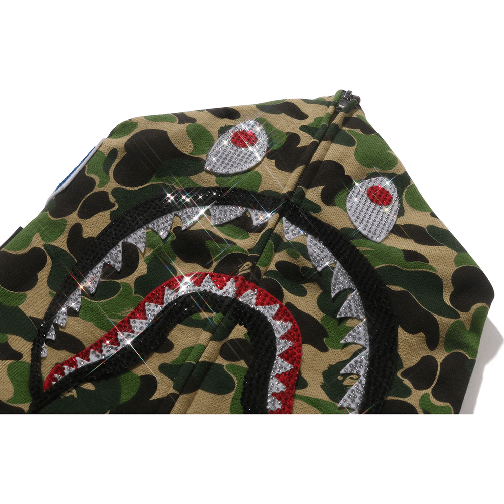 Bape ABC CAMO CRYSTAL STONE SHARK CROPPED FULL ZIP HOODIE LADIES Green