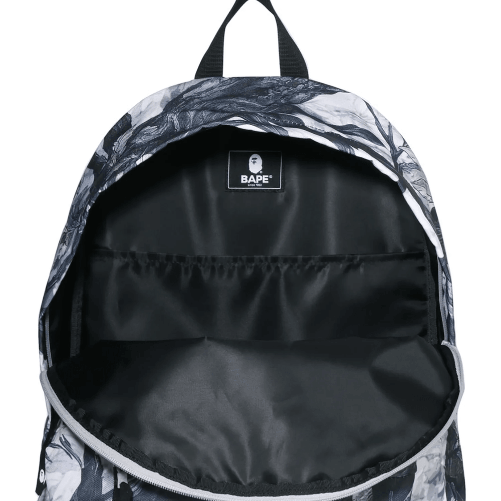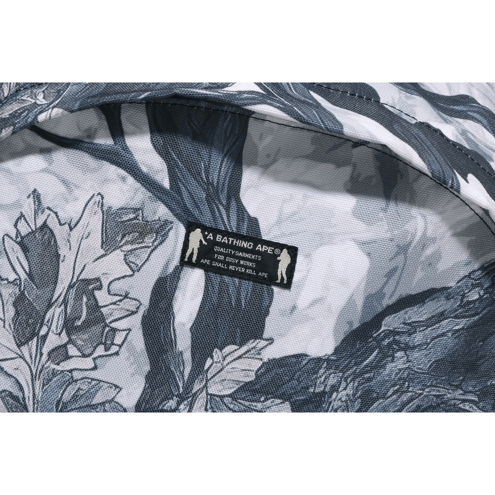 Discover the ultimate blend of style and functionality with the BAPE MENS TREE EDGE CAMO DAYPACK White. This daypack features a cutting-edge tree edge camo design, drawing inspiration from traditional hunting camouflage. With its unique blend of intricate tree and leaf motifs paired with a playful BAPE ape face, this bag is sure to turn heads.