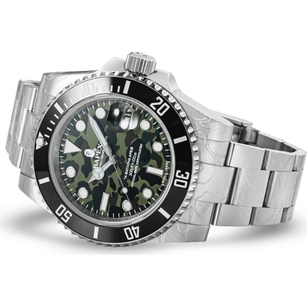 The 1ST CAMO TYPE 1 BAPEX® M Green features a robust build that ensures longevity and reliability. The watch is crafted with high-quality materials, making it resistant to water and wear. Its unique camouflage design not only adds an element of style but also makes it a great accessory for any outdoor gear.