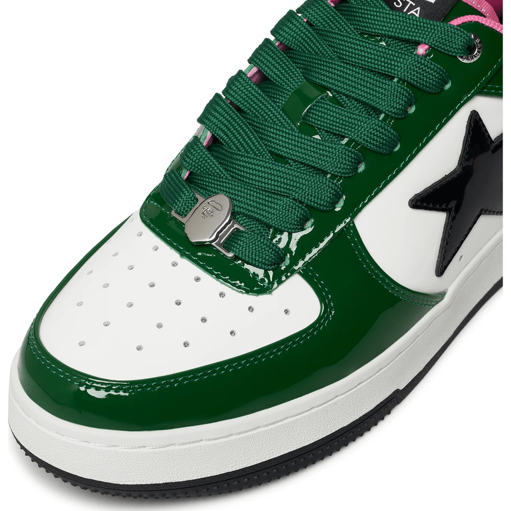 The BAPE STA #1 MENS Green sneaker is not just about looks; it's about making a statement. Whether you're heading to a casual meet-up with friends or hitting the streets, these sneakers provide the perfect blend of comfort and style. The glossy patent leather adds a touch of luxury, making them suitable for both day and night wear.