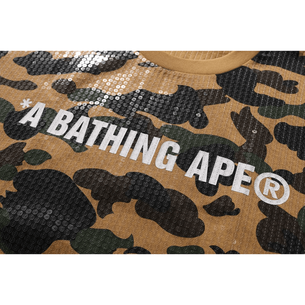 gå Ikke Glip Af Chancen For At Eje Bape 1st Camo Logo Relaxed Fit Sequin T-shirten Til Mænd I Gul. køb Nu Og Redefiner Din Stil Med Dette Trendy Must-have!