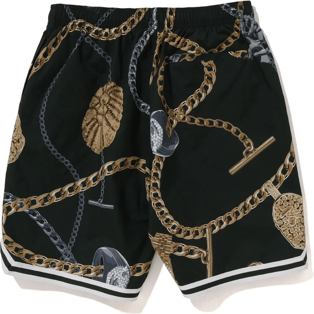 The BAPE JEWELS SHORTS MENS Green combine fashion and functionality. Crafted from high-quality polyester, these shorts are lightweight and breathable, making them ideal for warm weather. The vibrant green color and distinctive BAPE jewels design ensure you stand out in any crowd.