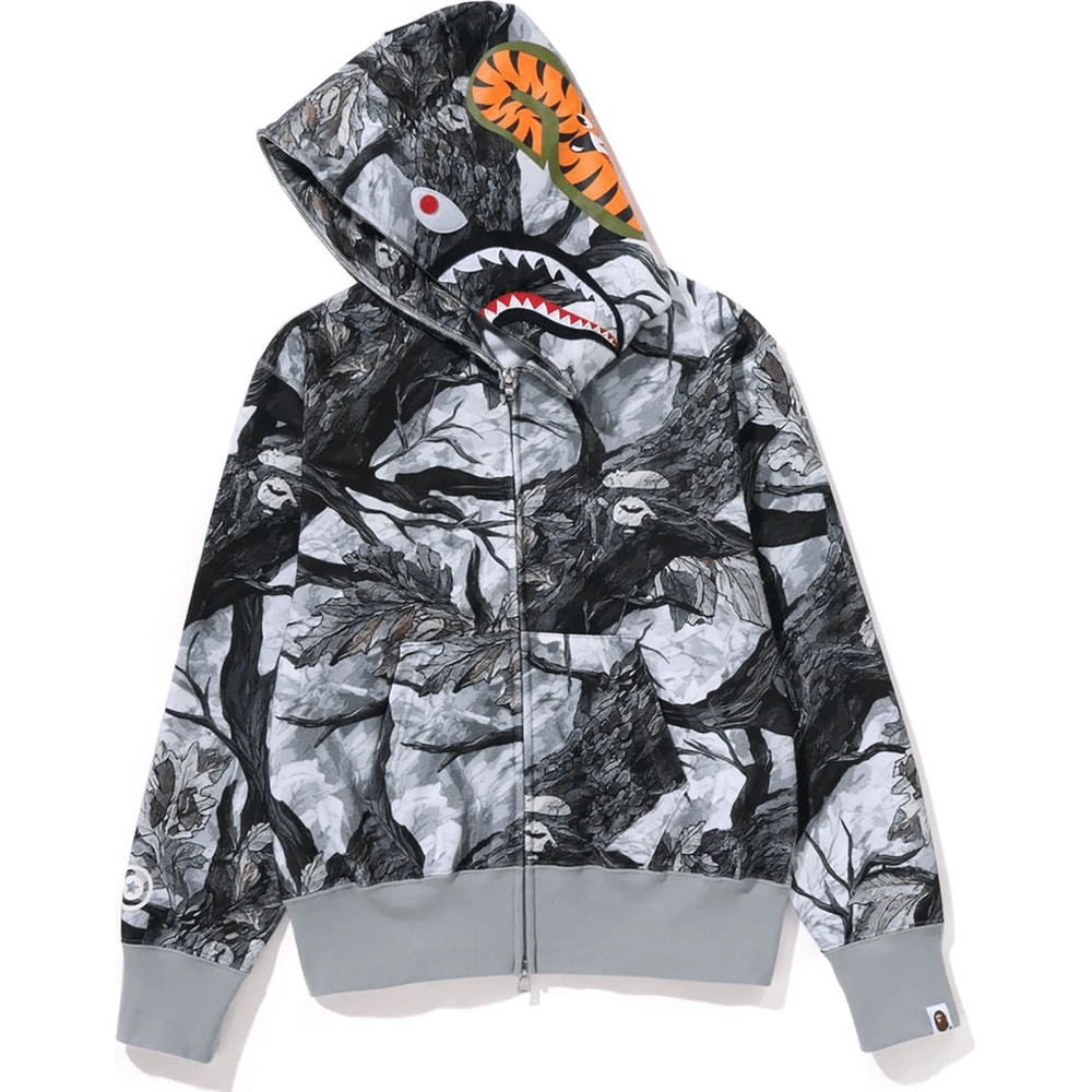 Bape TREE EDGE CAMO SHARK FULL ZIP HOODIE LADIES White