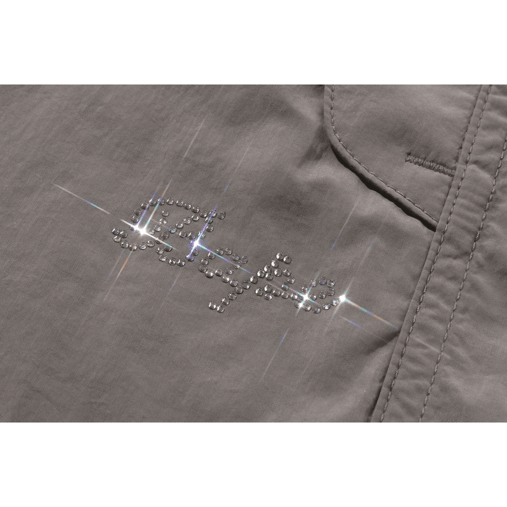 The CRYSTAL STONE BAPE LOGO ARMY PANTS LADIES Gray are more than just pants; they are a fashion statement. The unique crystal stone detailing adds a sparkle that catches the eye, making these pants perfect for any occasion. Whether you're heading out with friends or lounging at home, you'll feel stylish and comfortable.