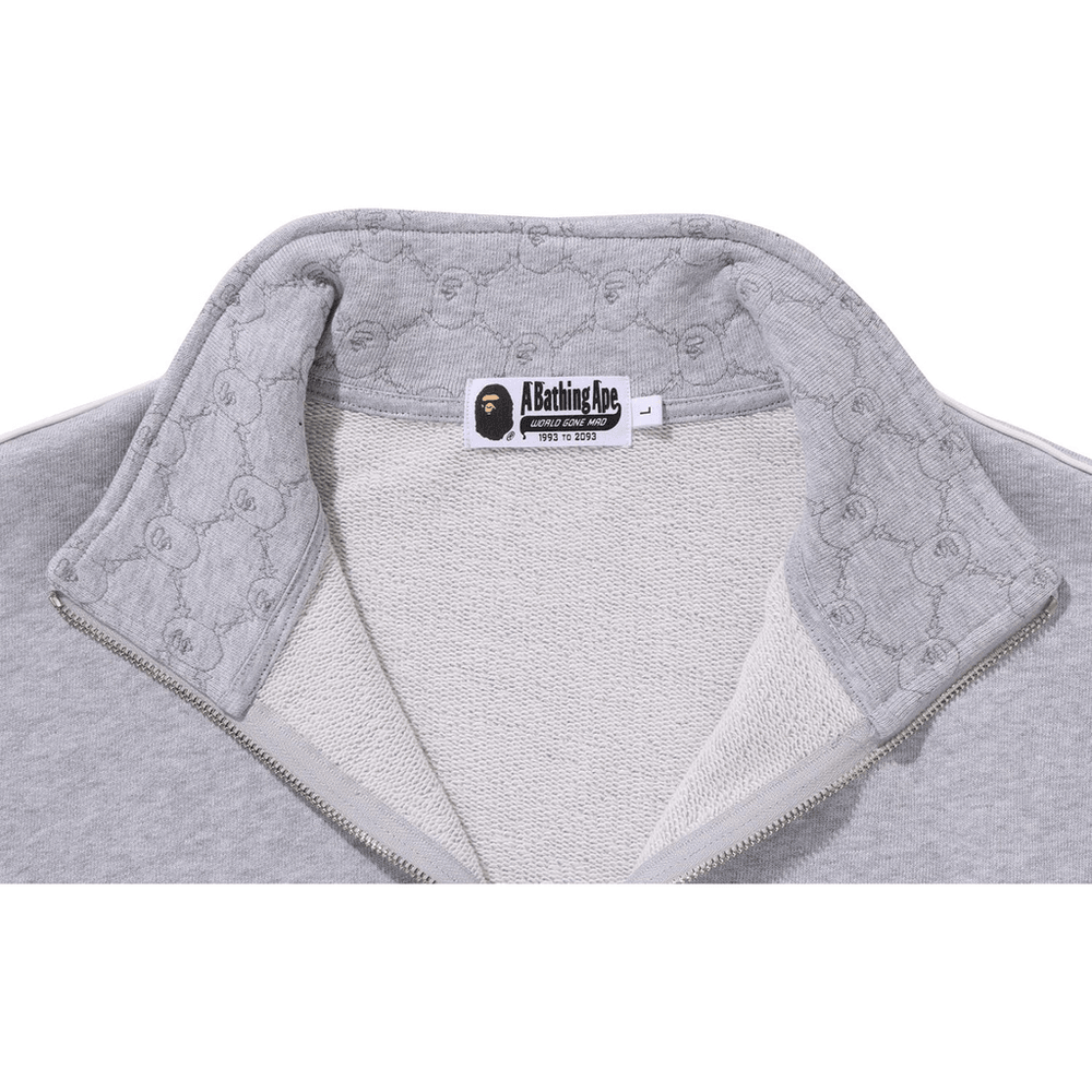 Bape COLLEGE MONOGRAM LOGO HALF ZIP RELAX FIT CREWNECK SWEATSHIRT MENS Gray