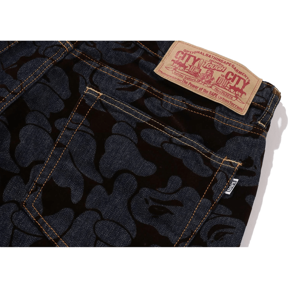 Bape CAMO FLOCKED RELAXED FIT 13 OZ DENIM PANTS MENS Indigo