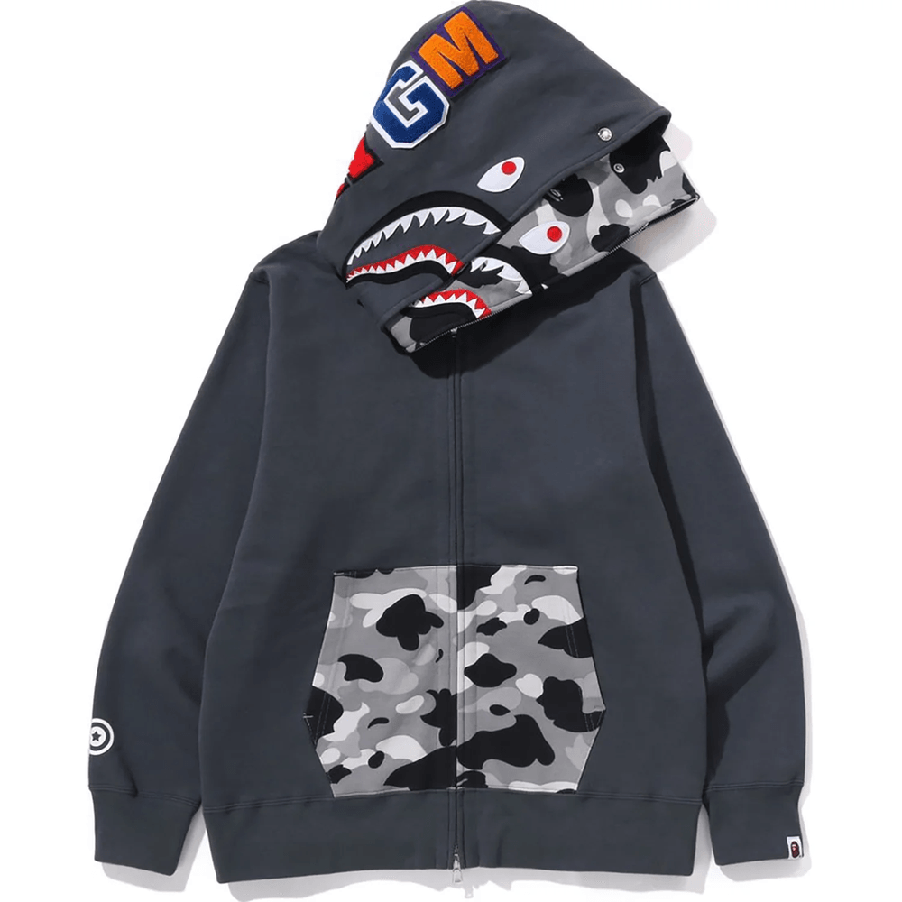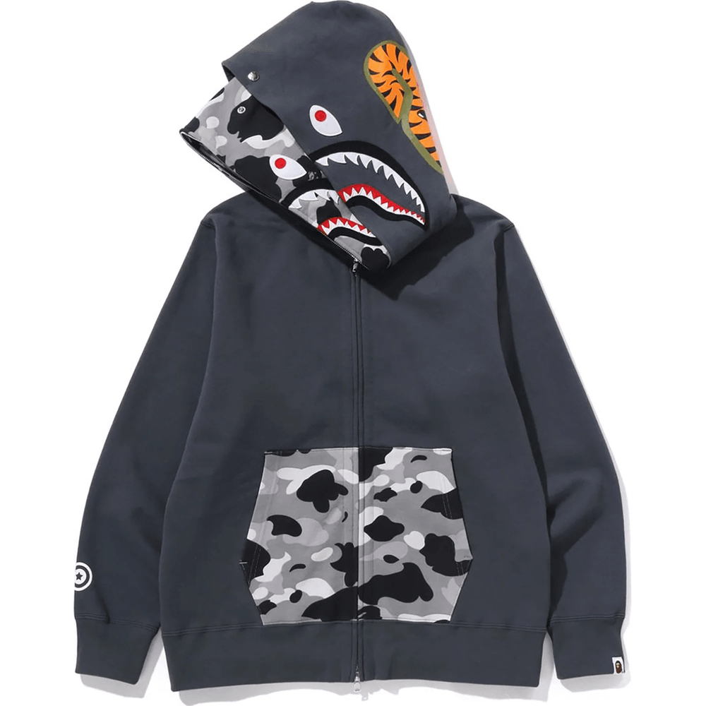 Bape 1ST CAMO SHARK FULL ZIP DOUBLE HOODIE MENS Gray