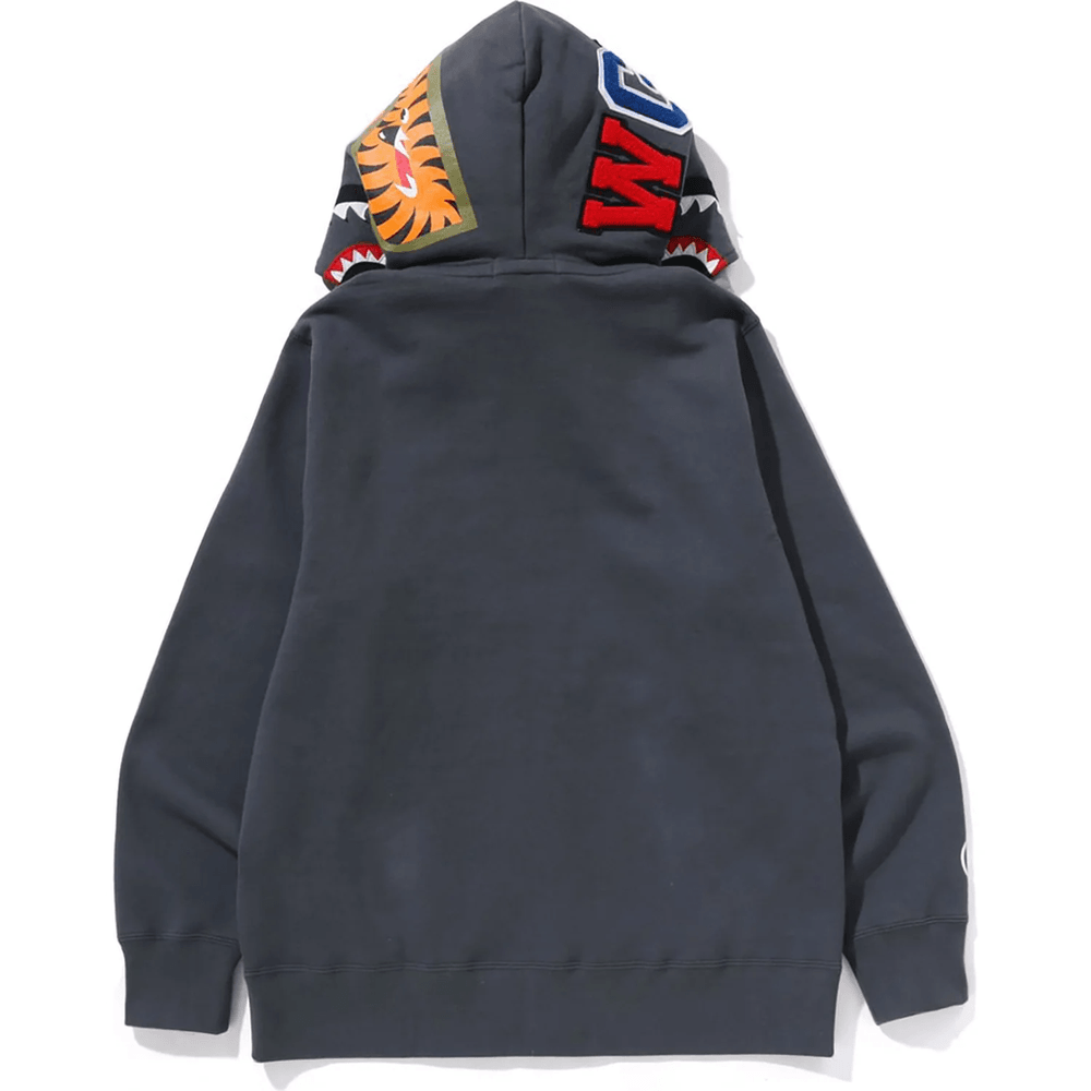The Bape 1ST CAMO SHARK FULL ZIP DOUBLE HOODIE MENS Gray features a full zip front that allows for easy wear and removal. Its double hood design adds extra warmth and style, making it ideal for both chilly days and casual outings. The gray colorway offers a fresh twist on the classic Bape look while maintaining versatility in your wardrobe.