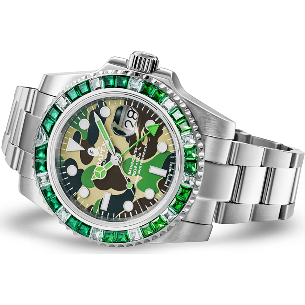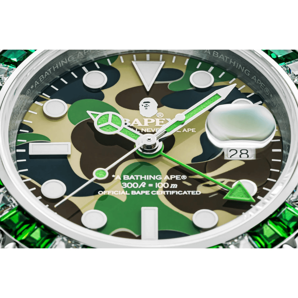 Elevate your style with the TYPE 2 BAPEX ABC CAMO CRYSTAL STONE MENS watch, where vibrant design meets rugged durability. Available in stunning green, pink, and blue ABC camo dials, this watch is crafted for those who dare to stand out.