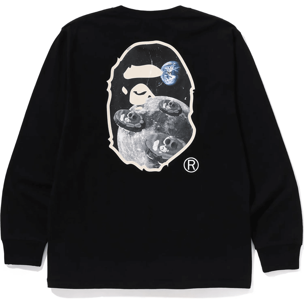 eleva Il Tuo Stile Streetwear Con La Bape Moon Ape Head Old Photo L/s Tee Nero Da Uomo. Questa Iconica Maglietta A Maniche Lunghe Unisce Comfort E Stile In Modo Impeccabile, Rendendola Un Must-have Per Qualsiasi Guardaroba Alla Moda.