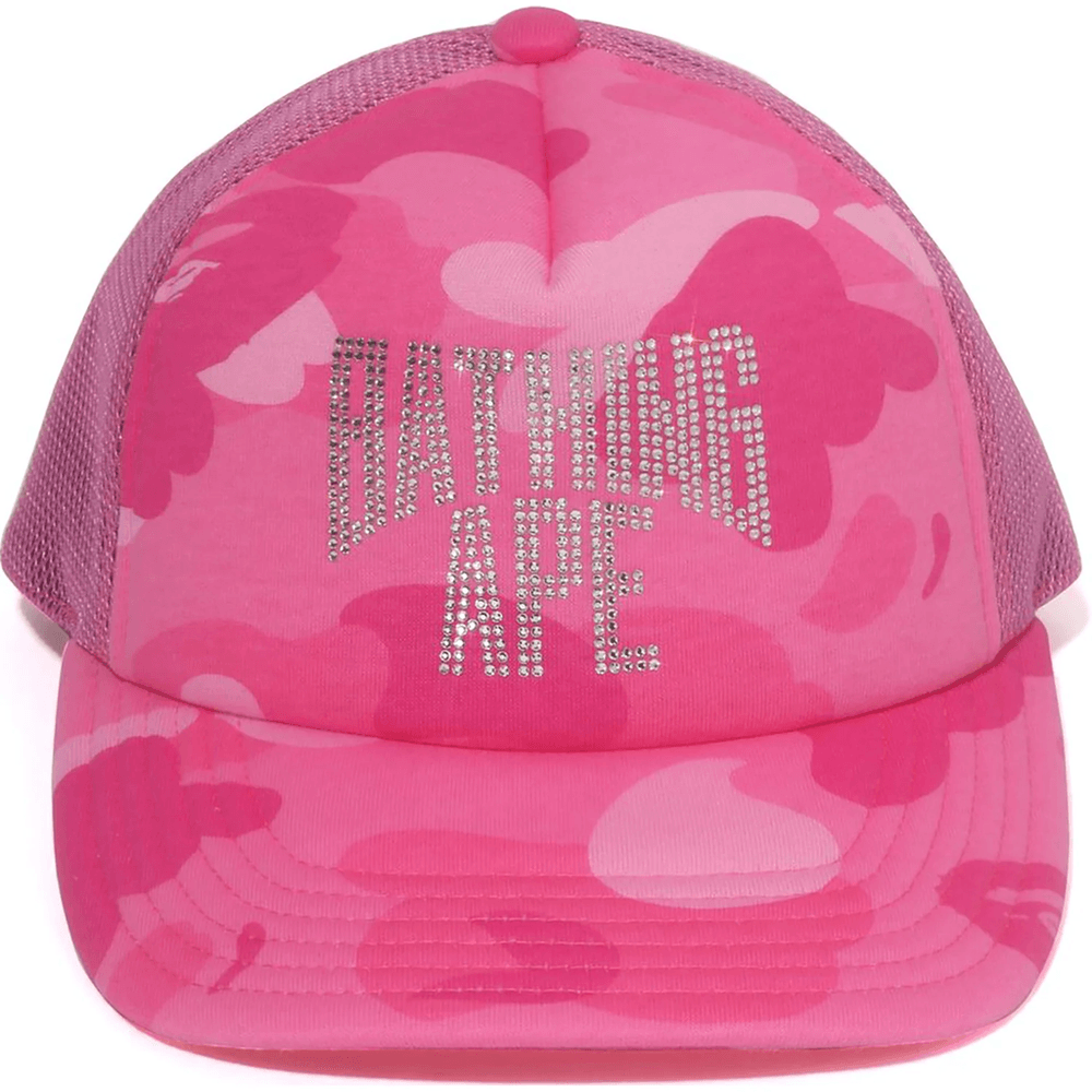Bape COLOR CAMO CRYSTAL BATHING APE LOGO MESH CAP LADIES Pink