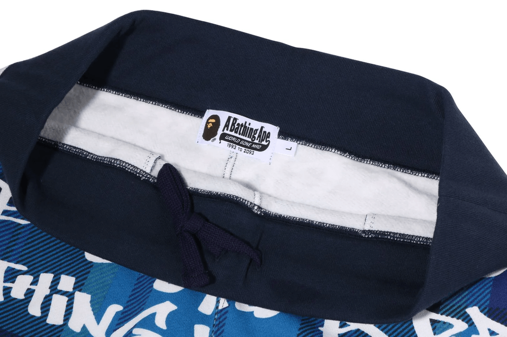 The BAPE Graffiti Check Sweat Shorts in blue are not just a fashion statement; they're a versatile addition to your wardrobe. Perfect for casual outings or lounging, these shorts combine style with functionality. The adjustable waistband allows you to personalize your fit, while the pockets provide ample space for your essentials.