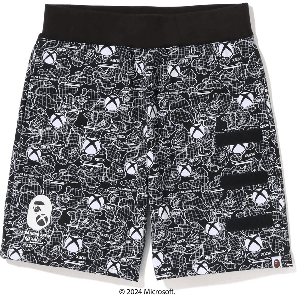 Elevate your streetwear game with the BAPE X XBOX CAMO SWEAT SHORTS MENS Black. Perfect for casual outings or lounging at home, these shorts combine style and comfort effortlessly. With their unique camo design and iconic branding, you'll stand out in any crowd.