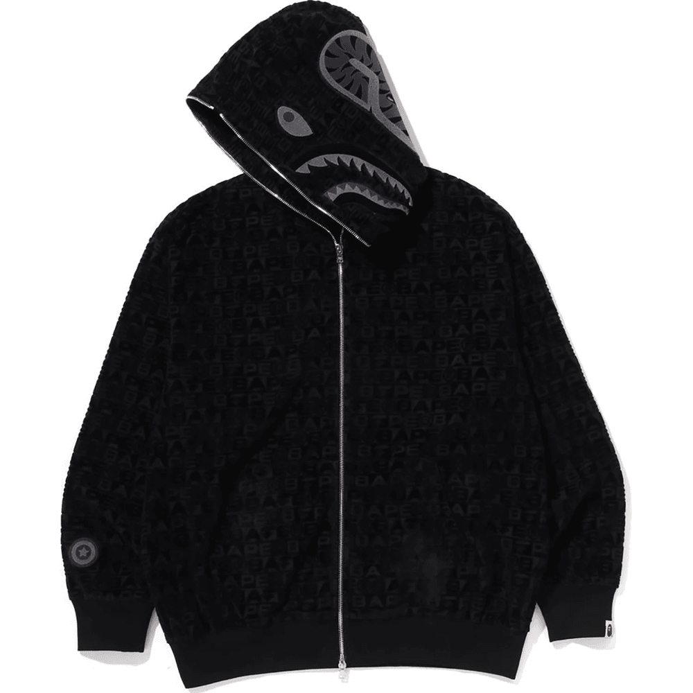 Bape LUX SPORT PATTERN SHARK RELAXED FIT FULL ZIP HOODIE MENS Black