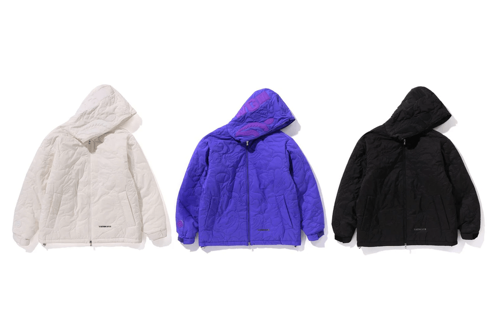 The Bape LINE CAMO QUILTED NYLON SHARK FULL ZIP JACKET MENS Ivory is designed for those who refuse to compromise on style. Its quilted construction provides warmth while the nylon fabric ensures a lightweight feel. Whether you're heading out for a casual day or hitting the streets for a night out, this jacket is versatile enough to suit any occasion.
