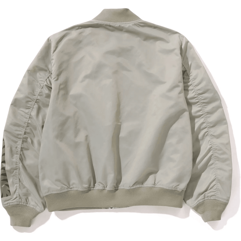 Elevate your streetwear game with the Bape TONAL CHAIN STITCH SHARK BOMBER JACKET MENS Beige. This iconic piece blends classic bomber style with bold contemporary designs, making it a must-have for any fashion-forward individual.