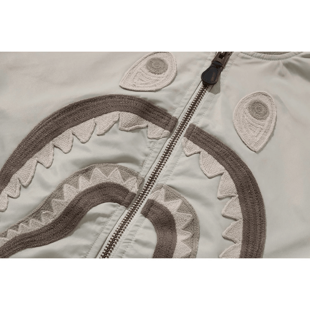 Bape TONAL CHAIN STITCH SHARK BOMBER JACKET MENS Beige