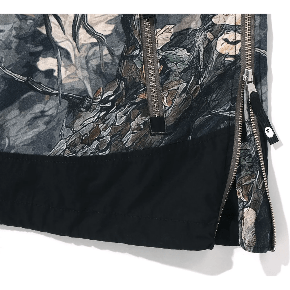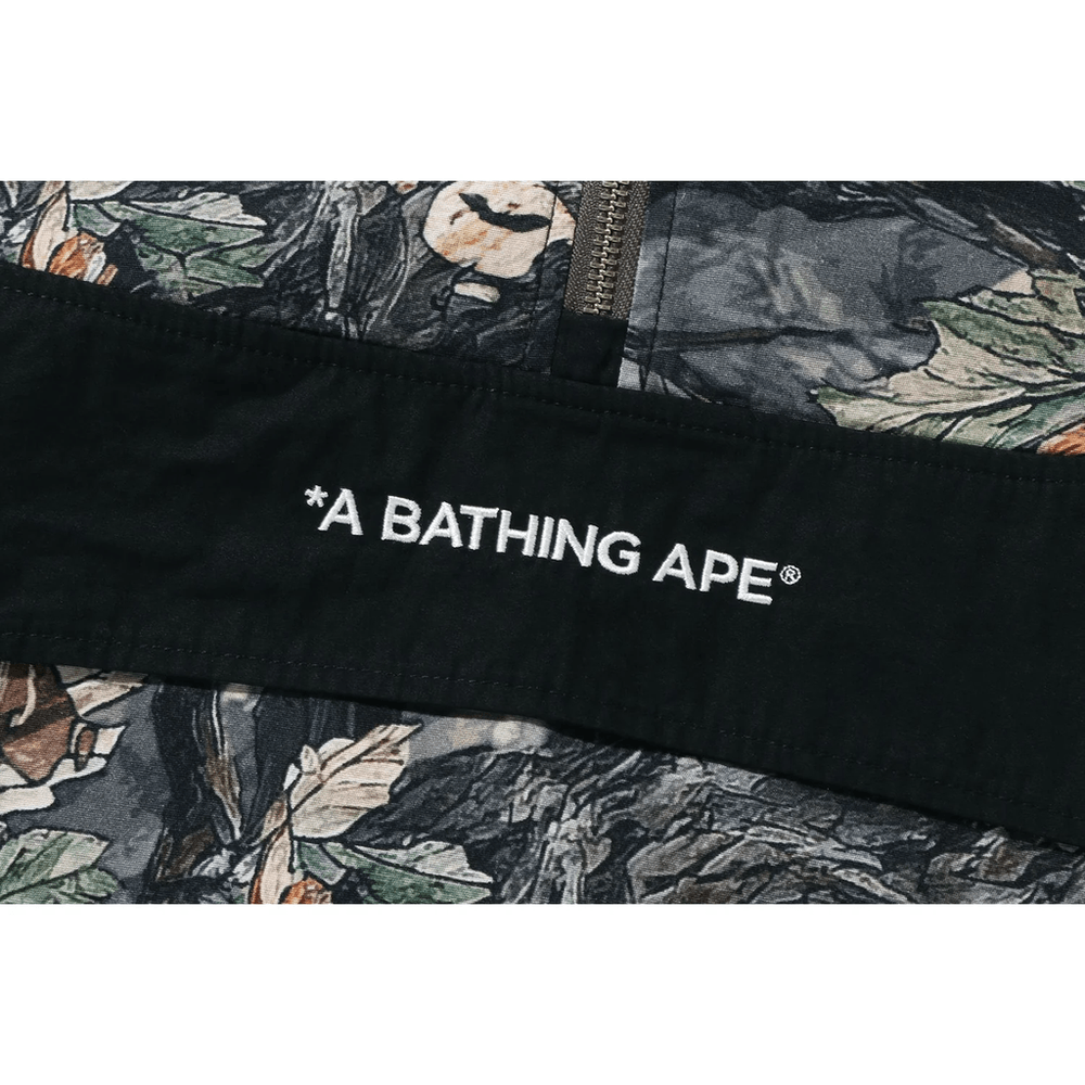 The Bape TREE EDGE CAMO ANORAK JACKET MENS Brown is crafted for those who appreciate both style and comfort. Its relaxed fit offers ample room for movement, making it ideal for outdoor adventures or casual outings. The new "tree edge camo" design not only elevates your look but also reflects a connection to nature, with detailed prints of trees and leaves.