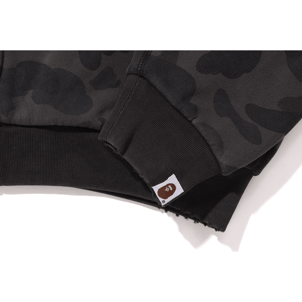 Discover the Bape 1ST CAMO HEAVY WASH CROPPED FIT ZIP HOODIE MENS Black