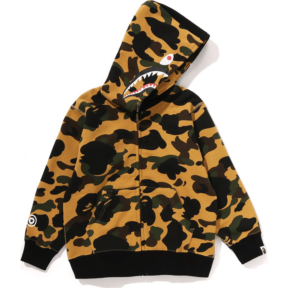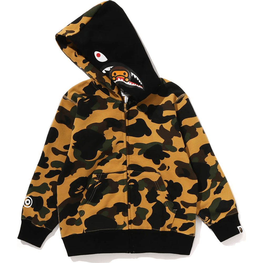 Bape 1ST CAMO MILO SHARK ZIP HOODIE KIDS Yellow
