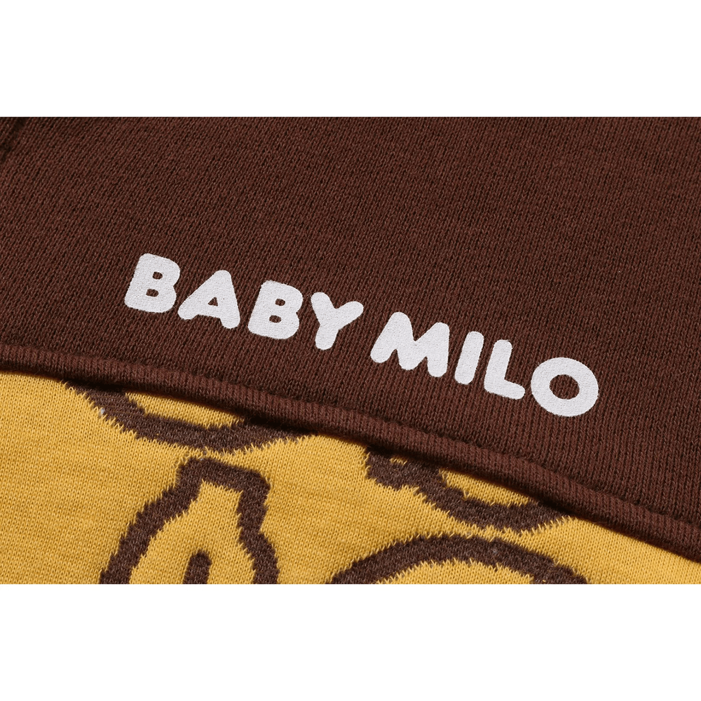 The Bape BANANA MILO KNIT JACQUARD ZIP HOODIE KIDS Yellow is not just a hoodie; it's a statement piece. With its vibrant yellow color and iconic Bape graphics, this hoodie brings a playful twist to any child's wardrobe. The knit jacquard fabric ensures warmth, while the zip-up design allows for easy layering over tees or under jackets. Ideal for school days, family outings, or simply lounging at home, this hoodie keeps your child looking fashionable and feeling comfortable.