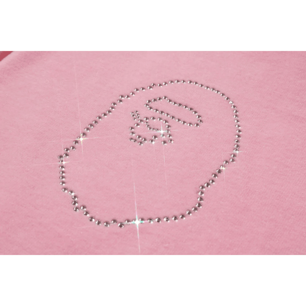 Bape CRYSTAL STONE APE HEAD VELOUR ZIP HOODIE LADIES Pink