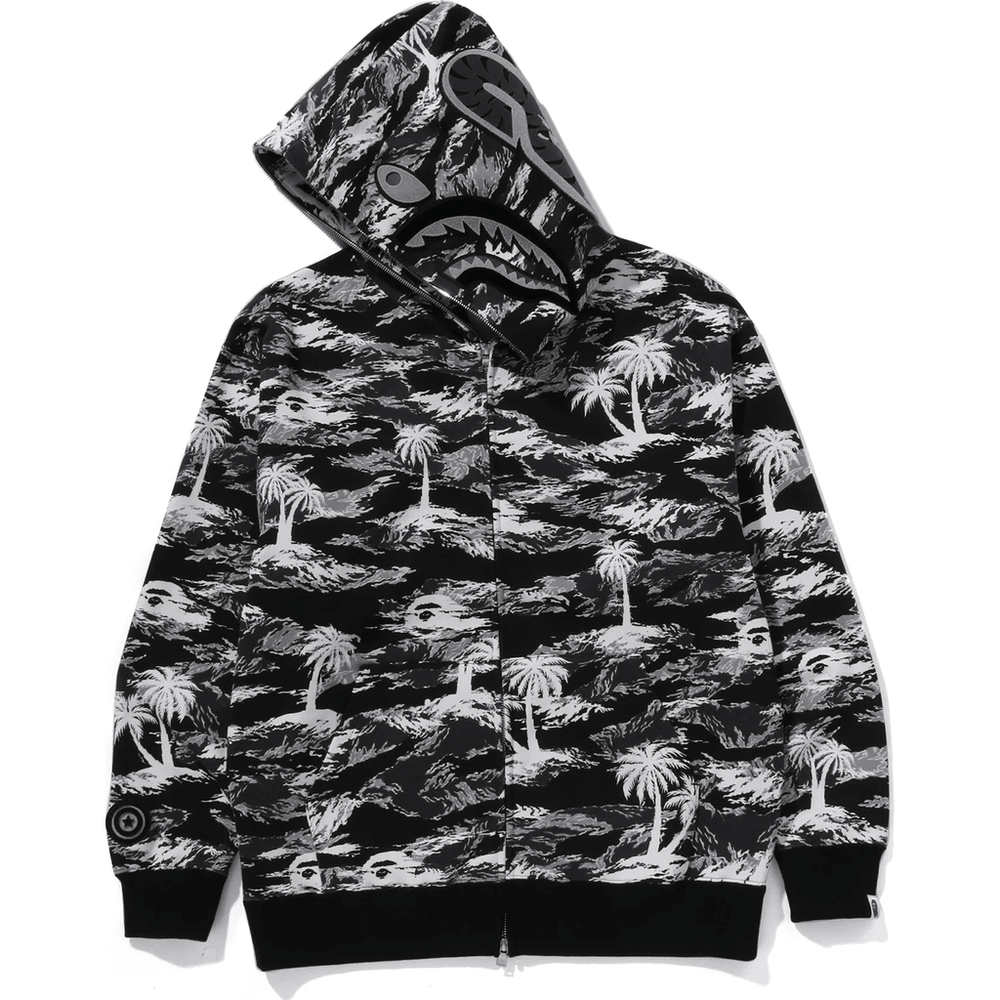Bape Palm Tree Camo Relaxed Fit Shark Full Zip Hoodie Mens Black