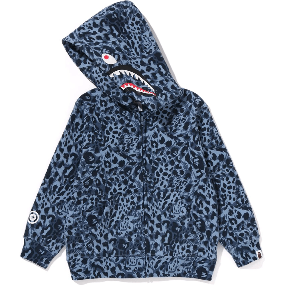 Bape WILD LEOPARD PATTERN SHARK ZIP HOODIE KIDS Blue