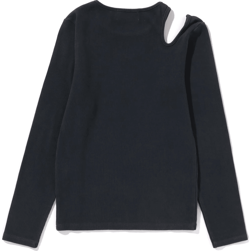 bape Pigment Dyed Cut Out Rib L/s Tee Ladies Black