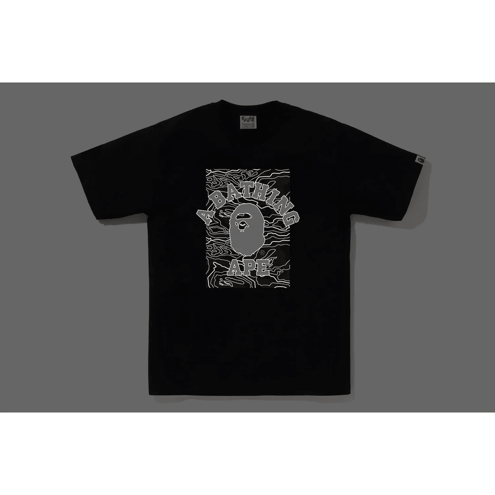 bape Layered Line Camo On College Tee Herre Svart X Svart