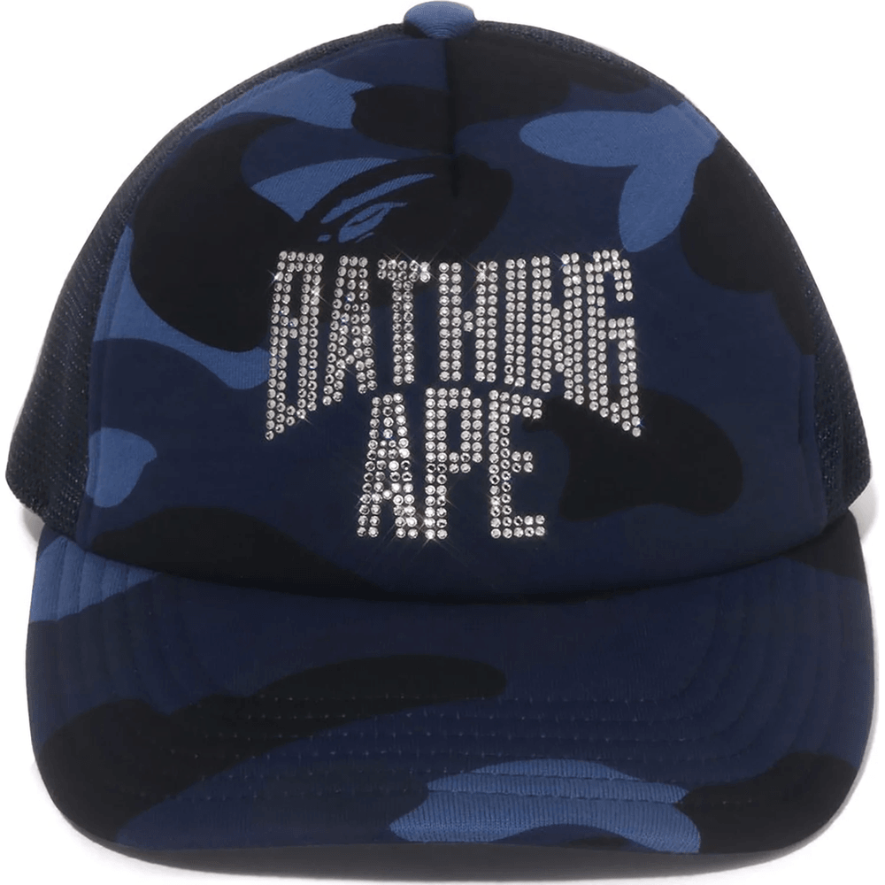 Bape COLOR CAMO CRYSTAL BATHING APE LOGO MESH CAP LADIES Navy