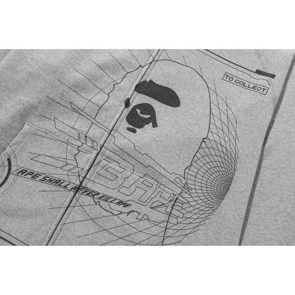 BAPE OVERPRINTED FULL ZIP HOODIE MENS Gray