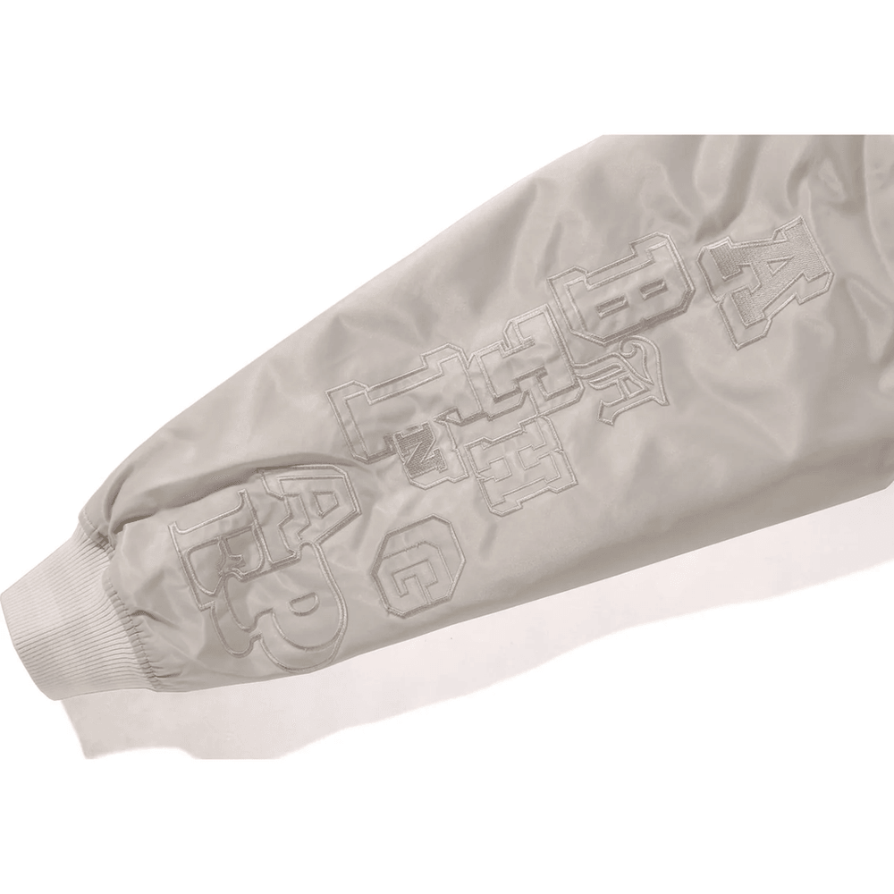 Elevate your street style with the Bape PATCHWORK VARSITY JACKET MENS Ivory. This iconic jacket combines bold design with superior comfort, making it a must-have addition to your wardrobe. Stand out from the crowd and express your individuality with this unique piece.