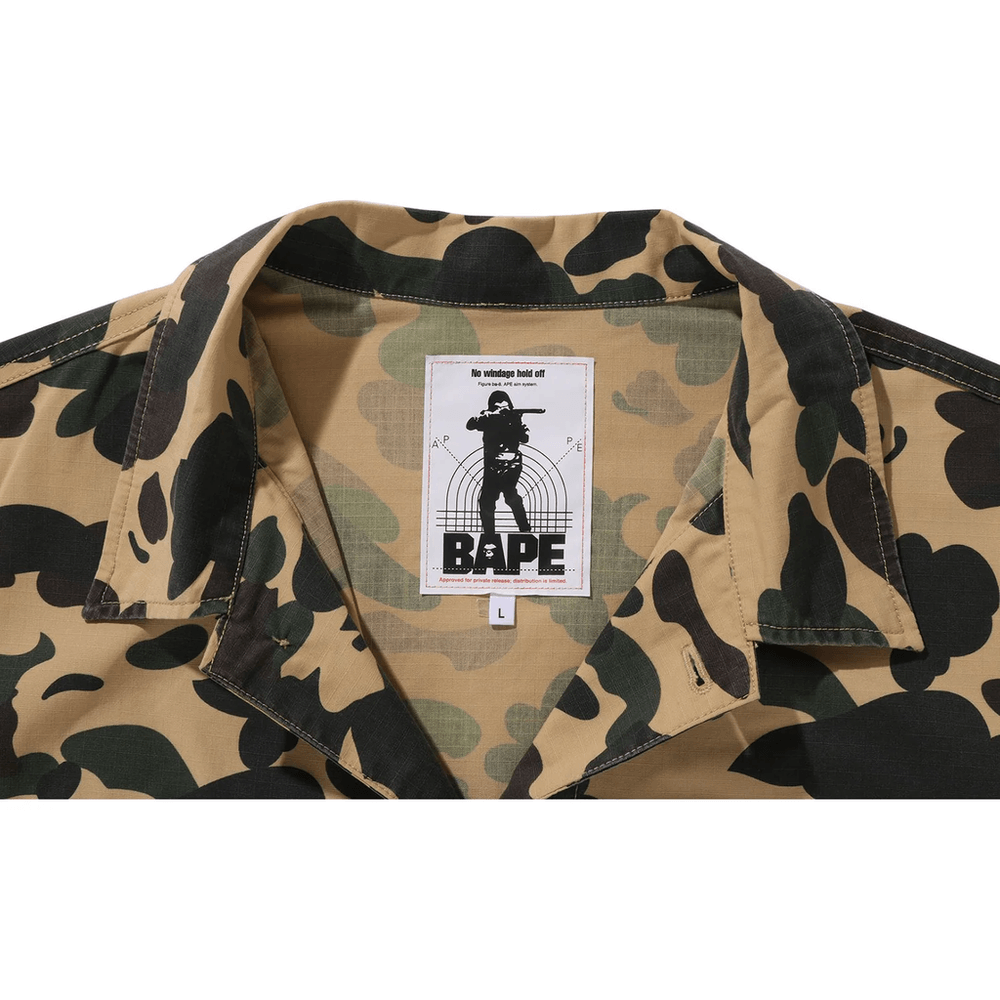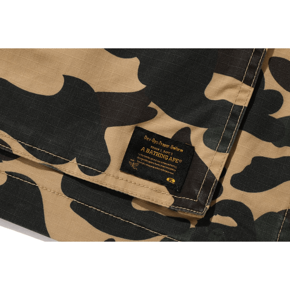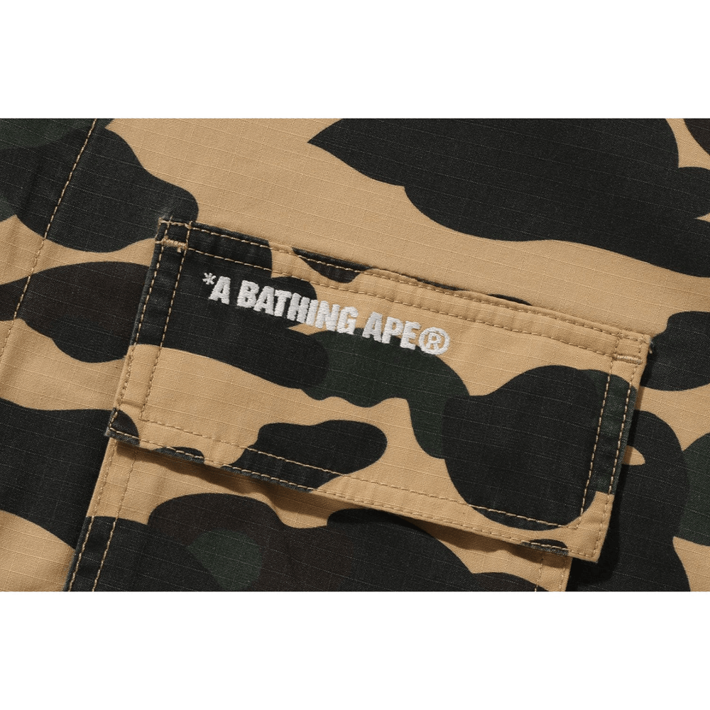 Discover the Bape 1ST CAMO HEAVY WASHED MULTI POCKET CARGO LS SHIRT MENS Yellow