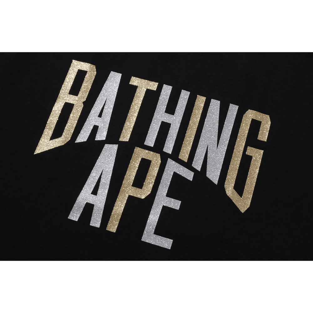 bape Glitter Nyc Logo Tee Męska Czarna To Nie Tylko T-shirt; To Manifest. Ta Koszulka Z Kultowym Wzorem Bape Jest Idealna Dla Tych, Którzy Chcą Wyróżnić Się W Tłumie. Czarne Tło Tworzy Eleganckie Tło Dla Połyskującego Logo, Dzięki Czemu Idealnie Nadaje Się Do Noszenia W Dzień I W Nocy.