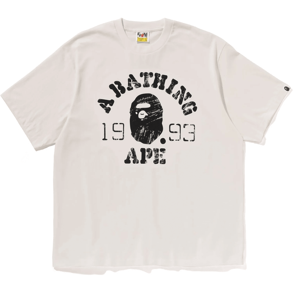 bape Screen Print College Relaxed Fit Tee Mens Ivory