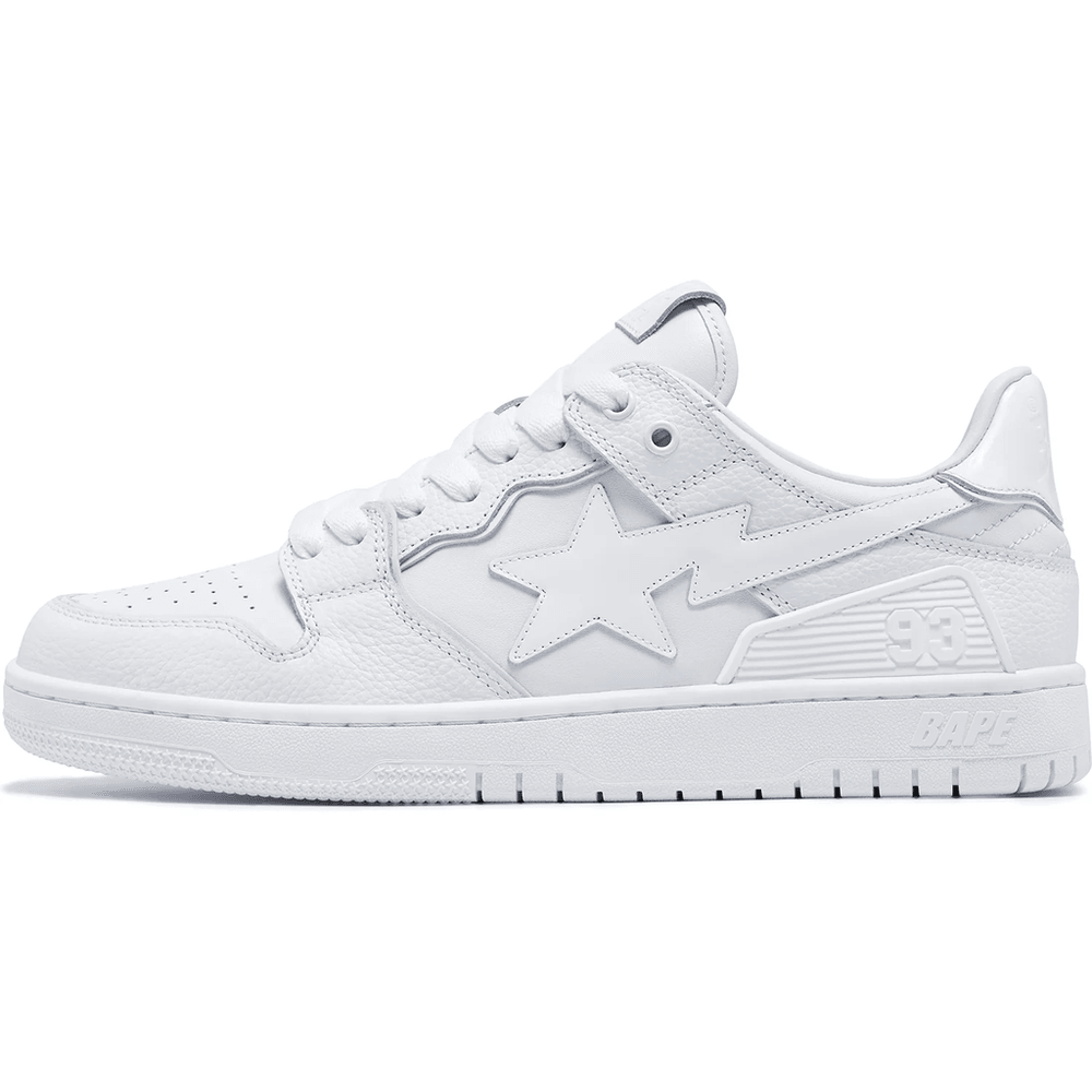 Introducing the BAPE SK8 STA #3 MENS White, the ultimate sneaker for the modern man who values both style and performance. Crafted from 100% premium cow leather, these shoes are designed to make a statement while offering exceptional durability.
