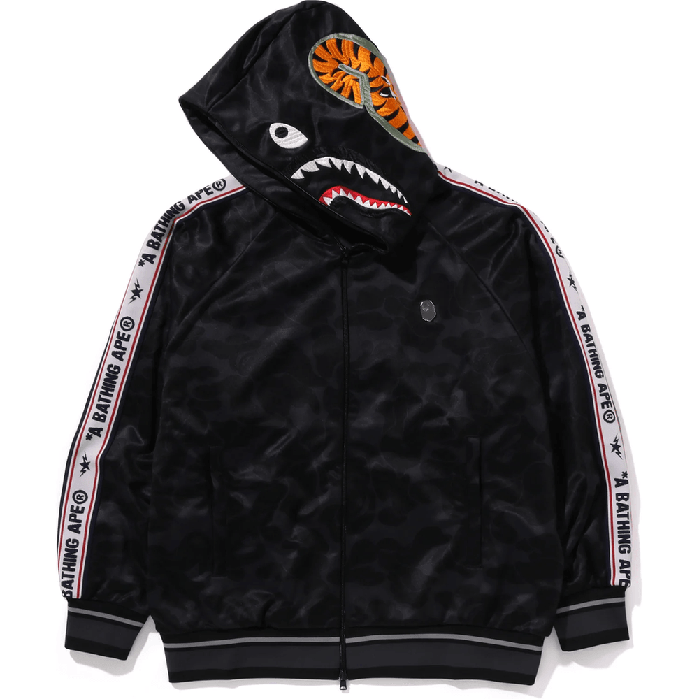 BAPE MENS SOLID CAMO RELAXED FIT SHARK FULL ZIP HOODIE JACKET Black