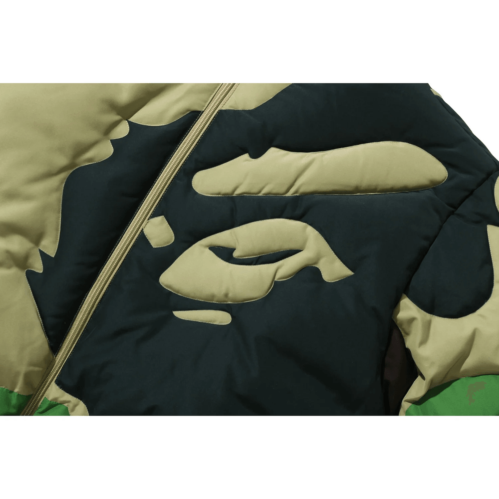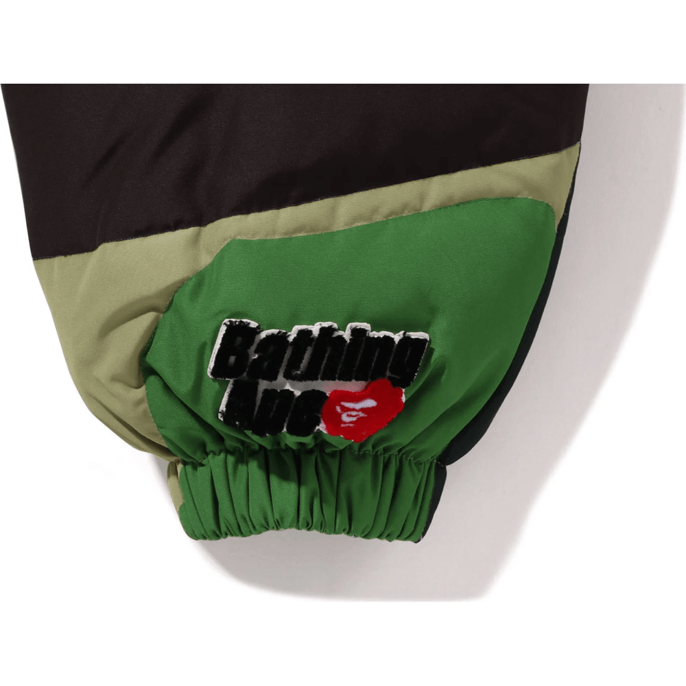 The Bape MEGA ABC CAMO DETACHABLE HOODIE PUFFER DOWN JACKET MENS Green is perfect for those chilly days when you want to stay warm without sacrificing style. With its innovative detachable hoodie, you can easily adapt your look from casual to sleek. The jacket features a unique camo pattern that is synonymous with Bape, ensuring that you turn heads wherever you go.