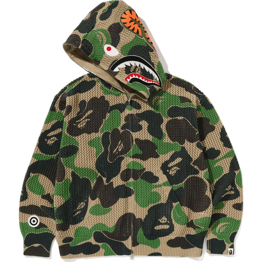 Bape ABC Camo Crochet Relaxed Fit Shark Full Zip Hoodie for Men - Green