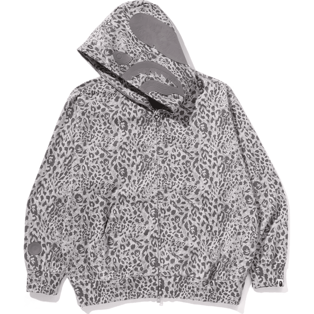 Bape WILD LEOPARD PATTERN SHARK RELAXED FIT FULL ZIP HOODIE MENS Gray
