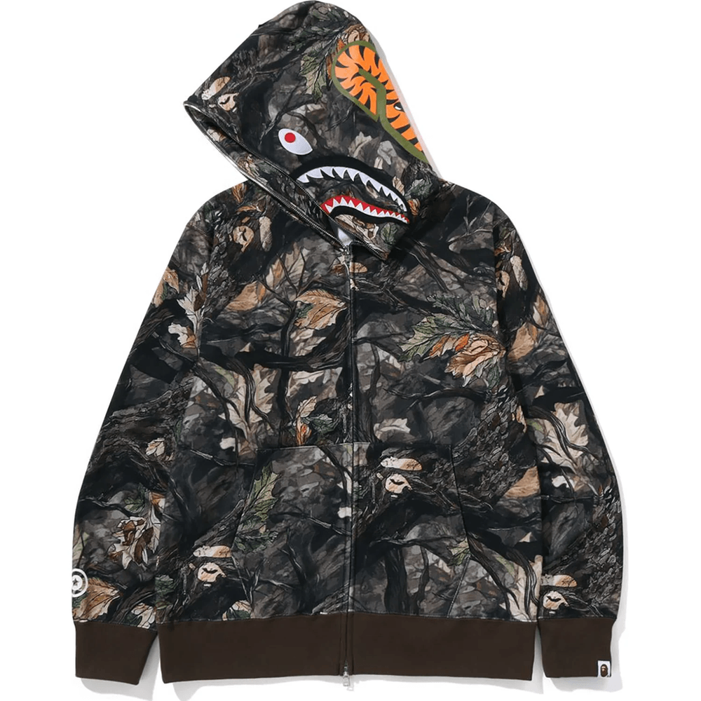 Bape TREE EDGE CAMO SHARK FULL ZIP HOODIE MENS Brown
