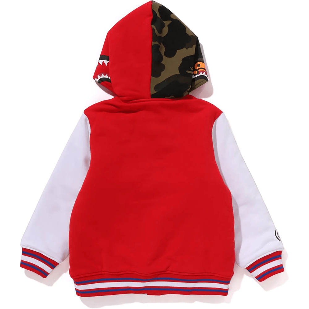 Don't miss out on this trendy addition to your child's wardrobe! Order the Bape MILO SHARK HOODIE SWEAT VARSITY JACKET KIDS Red today and let your child stand out in style!