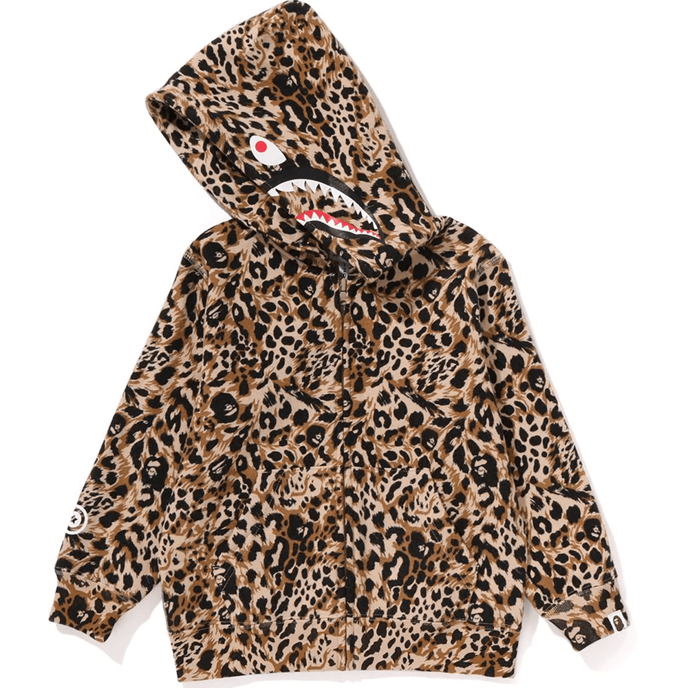 Bape WILD LEOPARD PATTERN SHARK ZIP HOODIE KIDS Beige