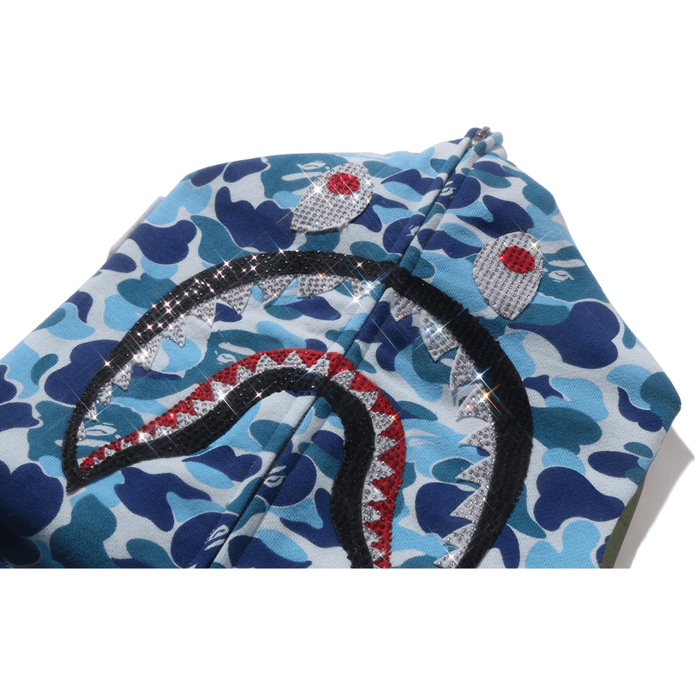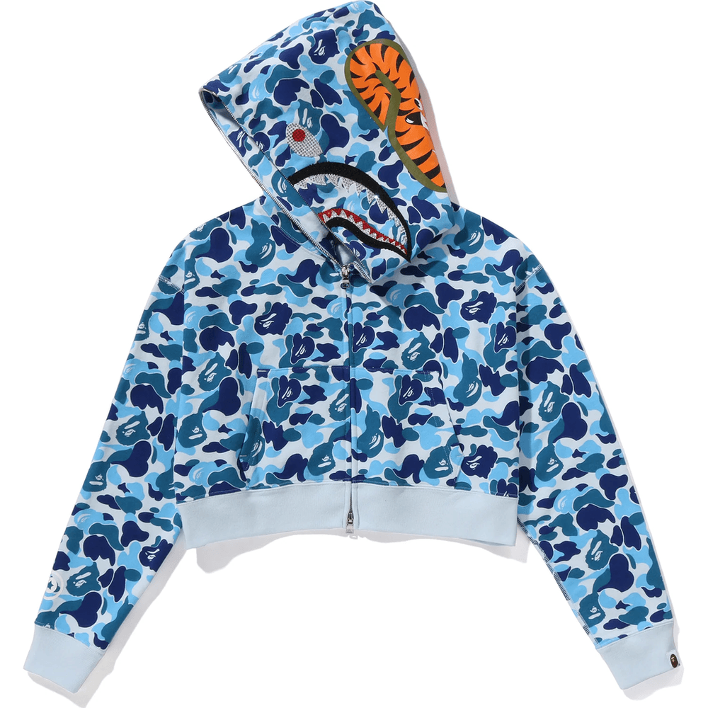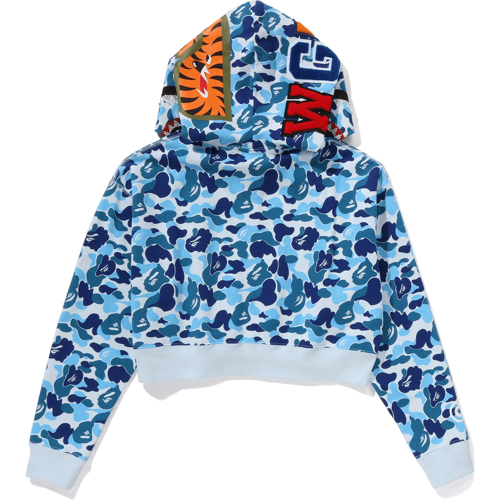 Bape ABC Camo Crystal Stone Shark Cropped Full Zip Hoodie Ladies Blue
