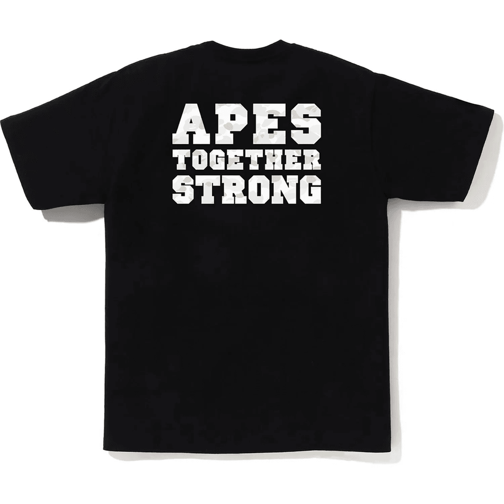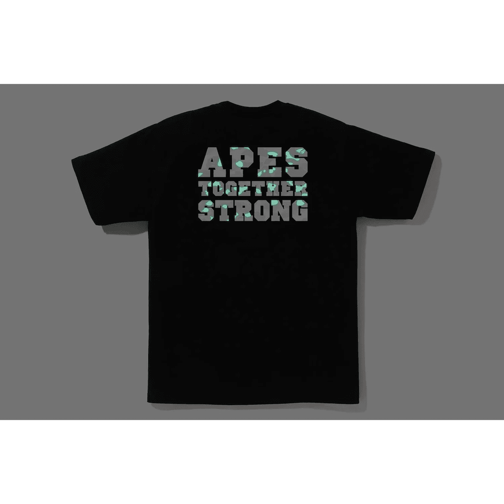 Pozdvihnite Svoju Streetwearovú Hru S Bape City Camo College Ats Tee Pánske čierne. Toto Výrazné Tričko Spája Pohodlie A štýl, čo Z Neho Robí Nevyhnutnosť Pre Každého, Kto Udáva Trendy. S Pútavým Logom City Camo College Na ľavej Strane Hrudníka A Grafikou „ape Together Strong“, Ktorá Svieti V Tme, Na Zadnej Strane, Je Toto Tričko Navrhnuté Tak, Aby Vyniklo.