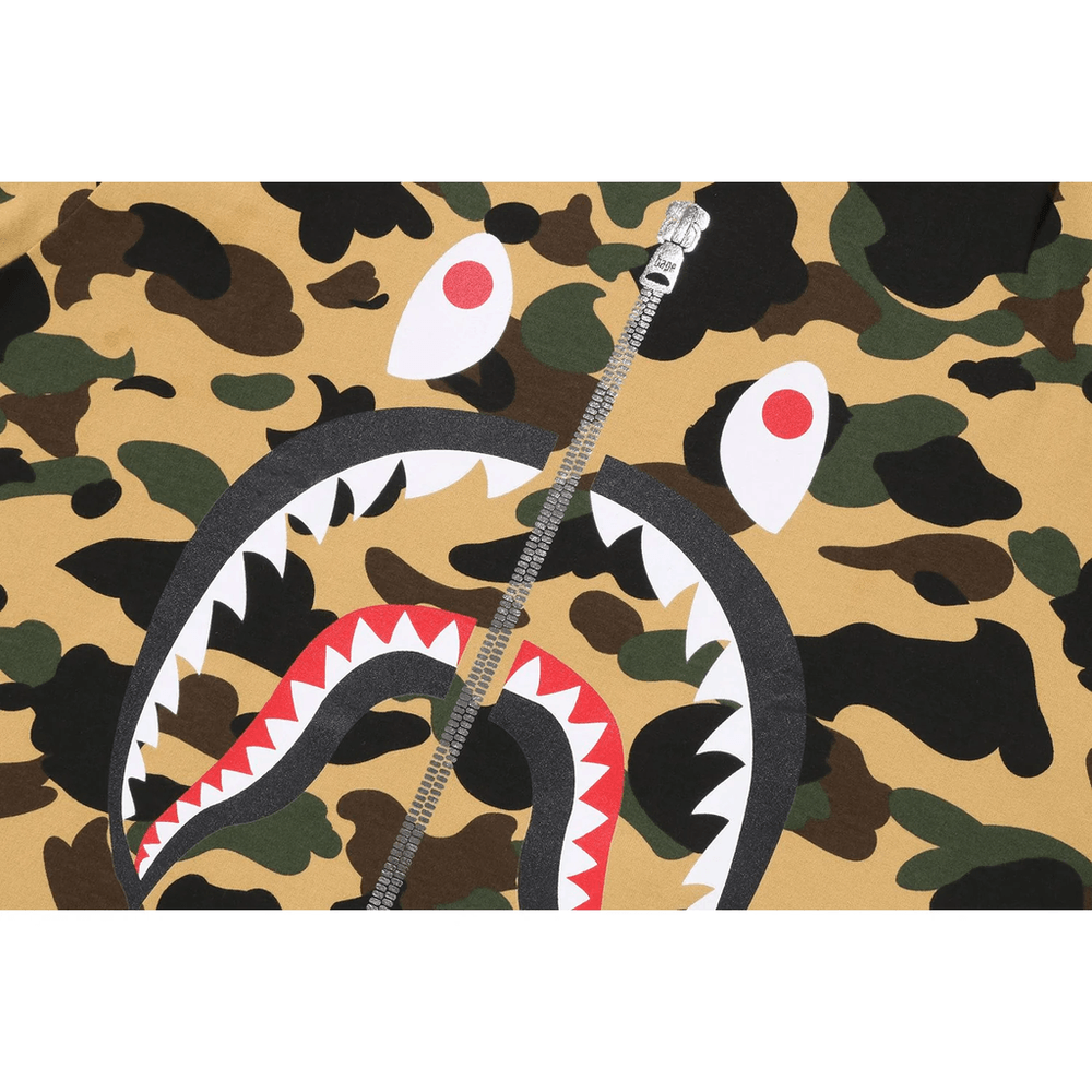 bape 1st Camo Shark Tee Moška Rumena Ni Le Majica; Je Izrazni Kos. S Prepoznavnim Dizajnom Morskega Psa Ta Majica Brez Težav Združuje Stil In Udobje. Ne Glede Na To, Ali Se Odpravljate Na Ulice Ali Družite S Prijatelji, Ta Majica Zagotavlja, Da Boste Izstopali Iz Množice.