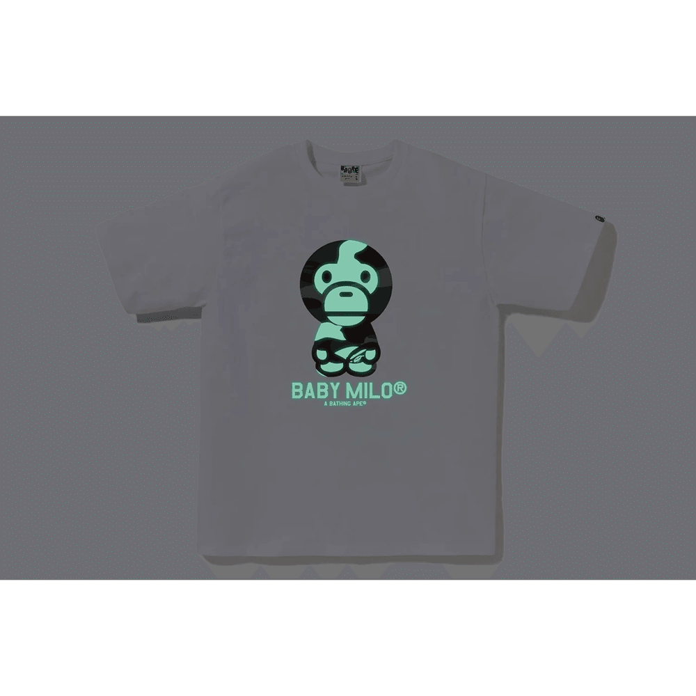 Lyft Din Garderob Med BAPE City Camo Baby Milo Tee Herr Vit. Denna Slående T-shirt Kombinerar Komfort Och Stil, Med En Unik Upplyst Baby Milo-design Mot Ett Trendigt City Camo-mönster. Perfekt För Dig Som Vill Sticka Ut, Denna T-shirt Lyser I Mörkret Och Ger En Spännande Twist Till Din Outfit.