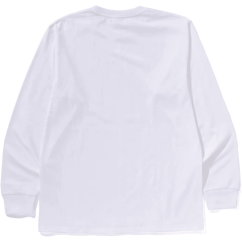 förhöj Din Garderob Med bape One Point Ls Tee Mens White. Denna Långärmade T-shirt Kombinerar Komfort Och Stil, Vilket Gör Den Till Ett Perfekt Val För Alla Tillfällen. Tillverkad Av äkta USA-bomull, Denna T-shirt Känns Inte Bara Bra Utan Visar Också Din Passion För Det Ikoniska A Bathing Ape-varumärket.